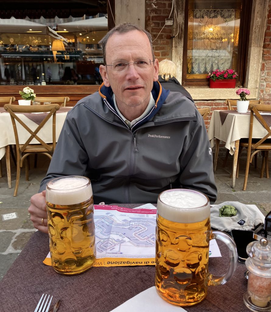 Wir genießen einen Aperol-Spritz zwischen vielen Studenten, die laut singend ihr Examen feiern. Zum Abendessen bestellen wir zwei große Bier und das nehmen die Italiener wörtlich.