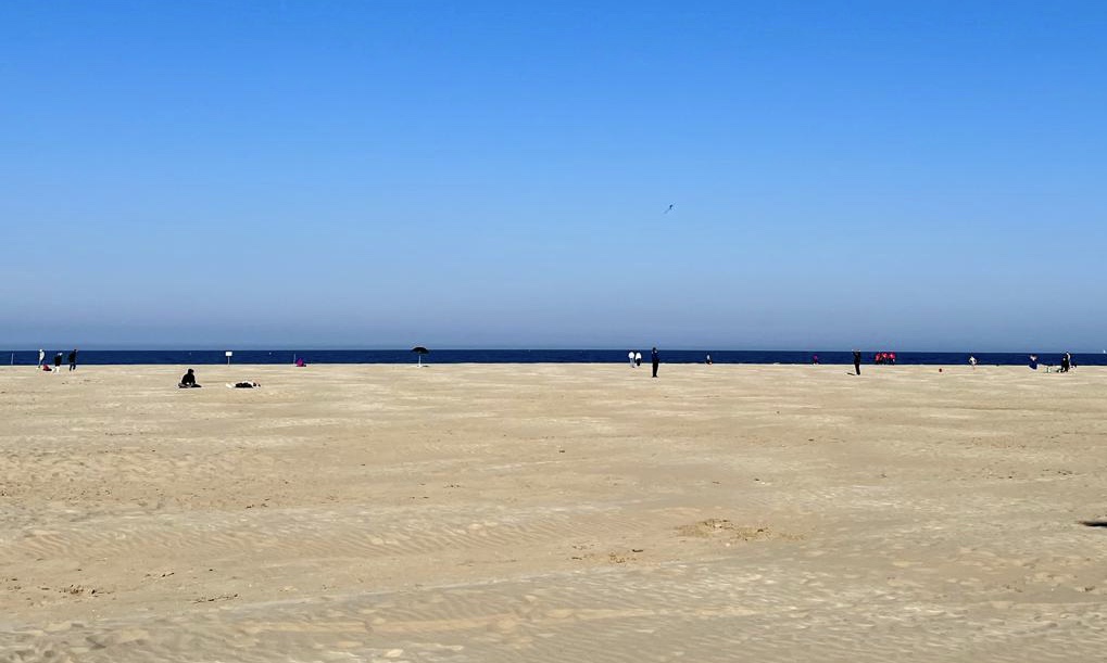 Draußen auf dem Meer sieht man sogar die Silhouette einer Bohrinsel.