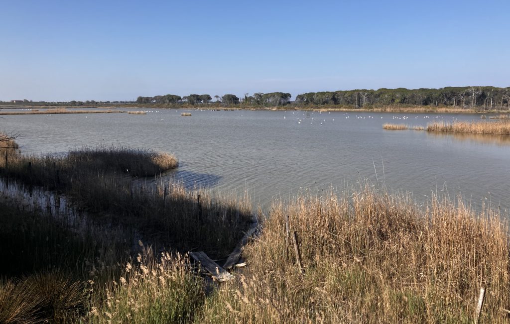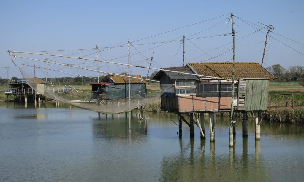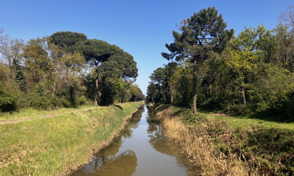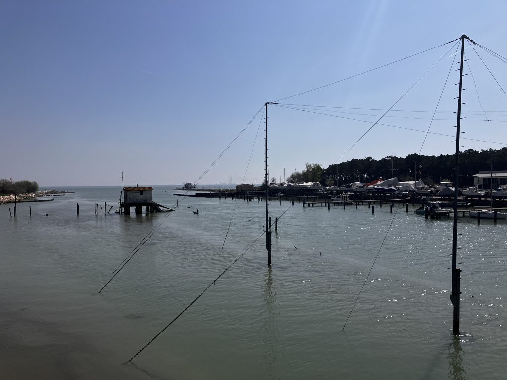 Der Weg beginnt wunderschön durch einen 10 km langen Pinienwald und wir dürfen für 80 Cent über einen Lagunenzufluss übersetzen, um dem Verkehr zu entgehen