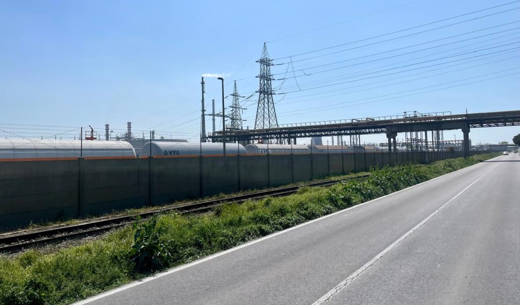 aber irgendwann enden wir dann doch wieder auf der großen Straße und kämpfen mit den LKWs um die schmale Radlspur. Egal, Helm auf, großen Gang rein, in den Windschatten und schnell Strecke machen. Irgendwann ist der Spuk vorbei und wir fahren wieder auf kleinen Nebenstraßen und Feldwegen, machen einen kulinarischen Picknick-Stop und erreichen mittags Ravenna. Interessanterweise führt der Weg durch ein riesiges Industriegebiet, wo wohl vornehmlich Erdöl verarbeitet wird.