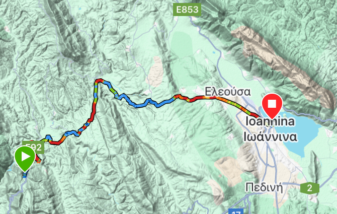 Eigentlich ist für heute nur eine kurze Etappe bis Ioannina geplant aber die Strecke hat wieder zwei knackige Steigung in sich. Am Ende meldet der Fahrradcomputer dann doch wieder 53 km und 925 Höhenmeter.