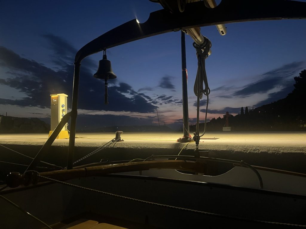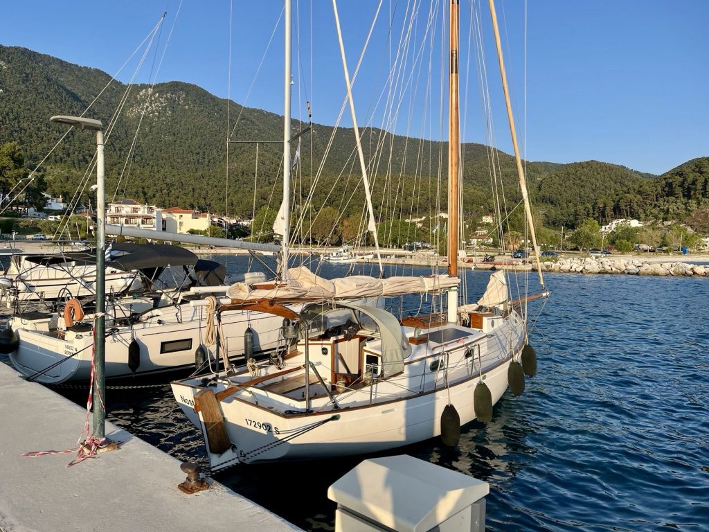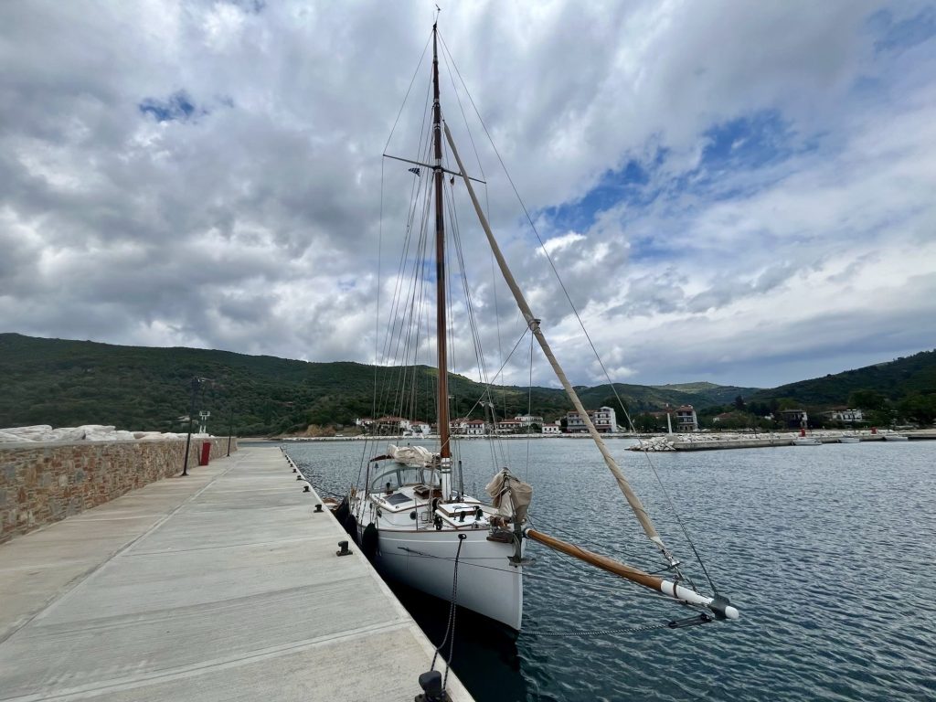 Im neuen, großen und leeren Hafen lege ich längs an – wann gibts das denn schon mal in Griechenland –