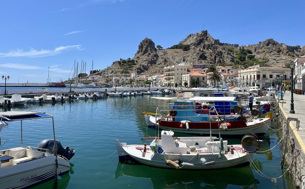 Gegen Mittag komme ich in Myrina an, Hauptstadt und Haupthafen der Insel Limnos. Limnos ist groß, etwa 35km im Durchmesser und hat 17000 Einwohner, schon eine andere Nummer als Ai Strati! Von weitem schon ist die Burg zu sehen, die hoch über dem Hafen trohnt.