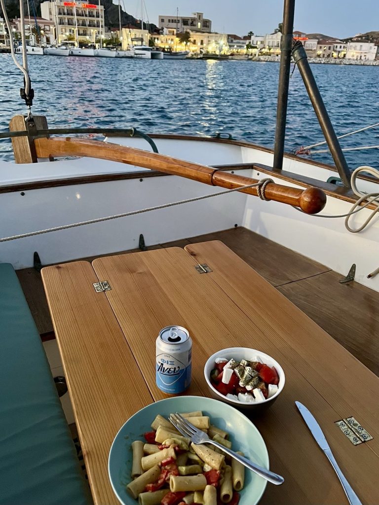 Auf Essen im Restaurant habe ich gar keine Lust, also koche ich mir was Schönes und lasse den Abend im Cockpit ausklingen.