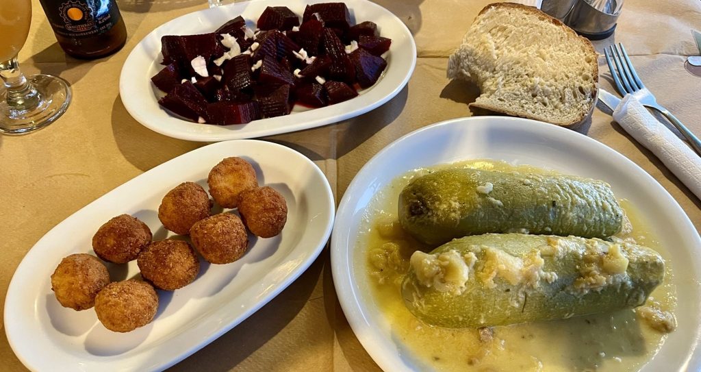 Ich bestelle mir ein Moped für morgen und finde ein Restaurant mit “gekochtem Essen”, wie die Griechen das nennen: Das “gegrillte Essen” – Souvlaki und Co. – mag ich nicht mehr sehen.