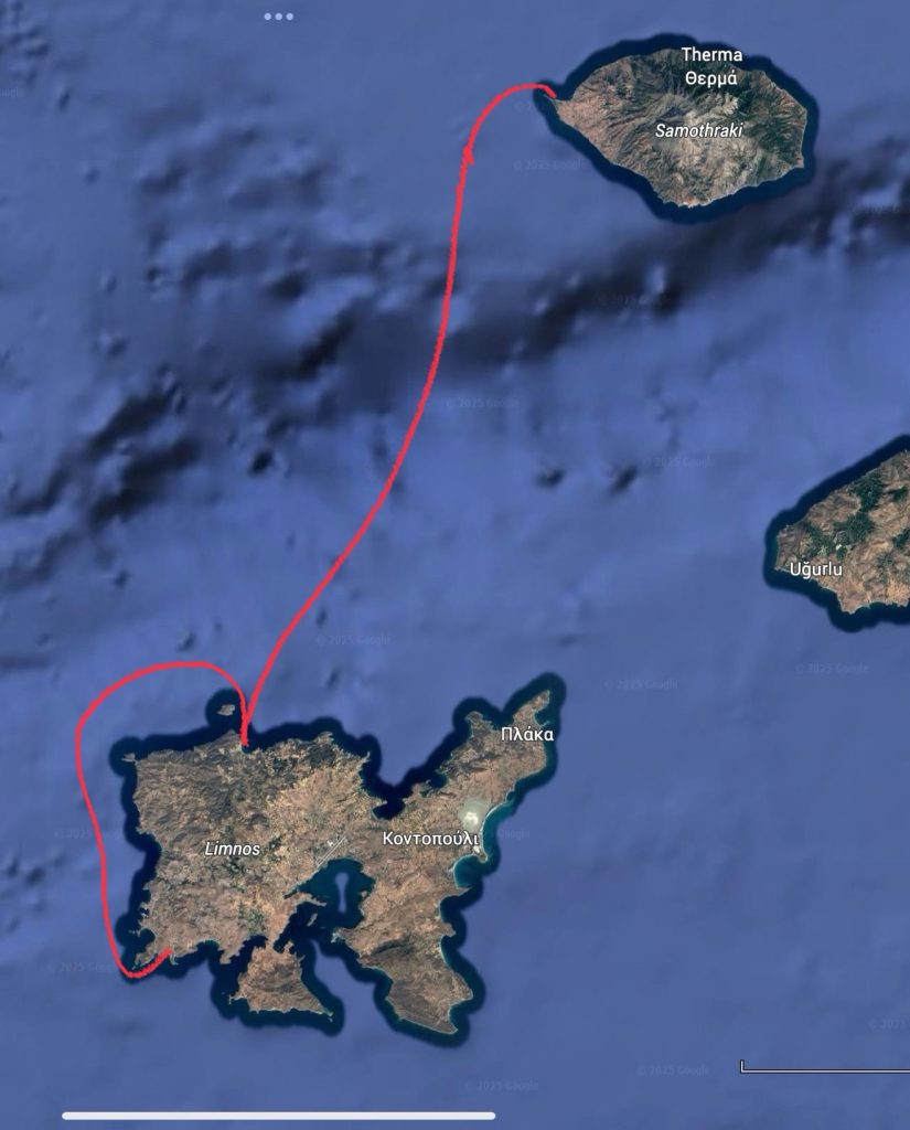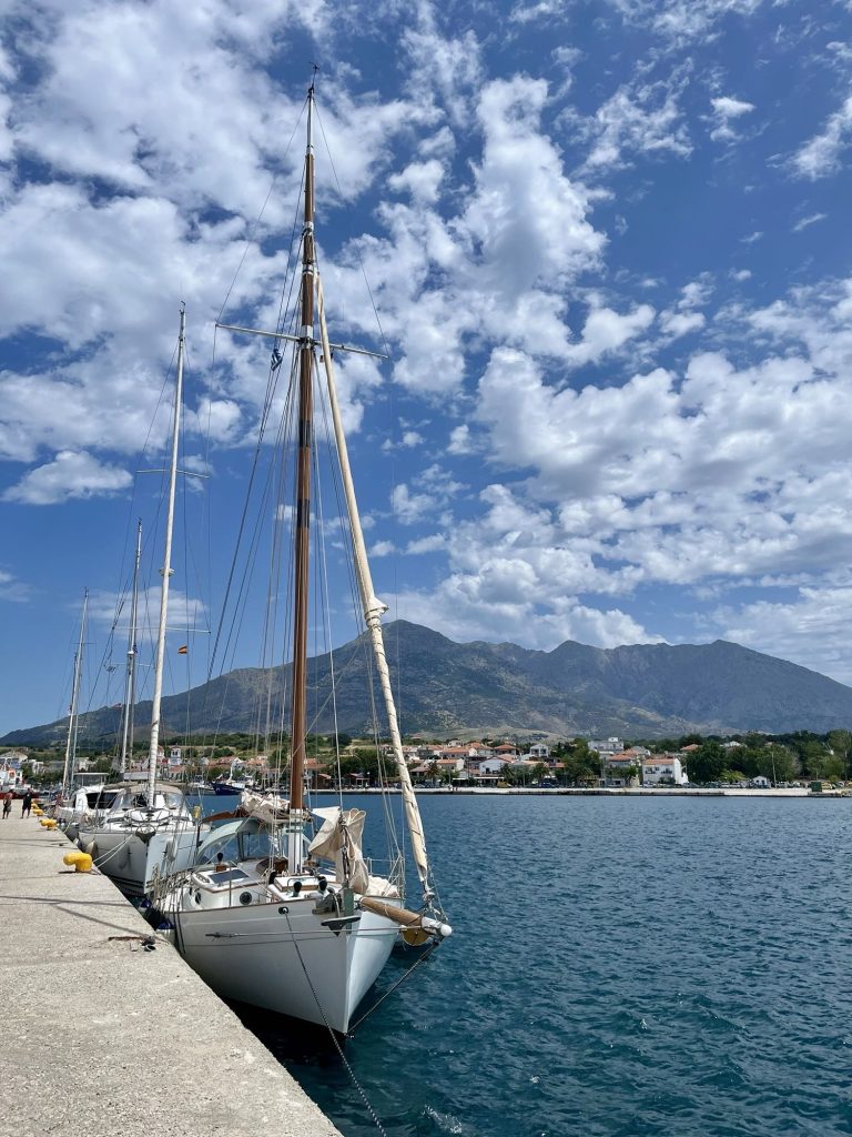 Frühmorgens folgt dann von dort die eigentliche Überfahrt, etwa 25 Seemeilen sind bis Samothraki noch übrig geblieben. In der Abdeckung der Insel ist es zunächst noch recht flau, doch dann springt der Wind an und bringt mich mit 12 Knoten perfekt an mein Ziel. Bestes Segeln. Vor dem Hafen Kamariotissa macht der Wind dann doch noch mal Sperenzen und frischt beim Einlaufen bis auf 22 Knoten auf. Aber dann ist das auch geschafft und ich lege längs am Kai an.