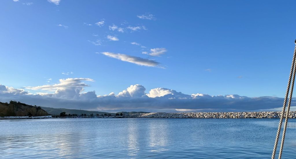 gut 50 Seemeilen, da heißt es wieder früh raus. Morgens um sieben haben sich die Gewitterwolken von gestern Abend verzogen,