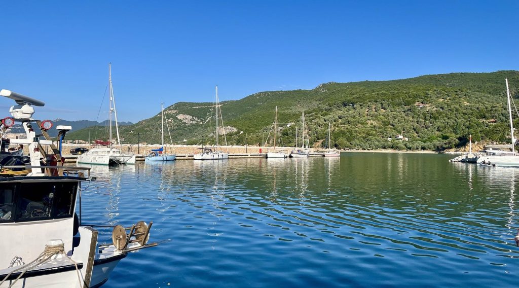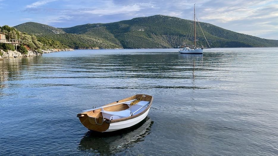 Morgens gegen vier wache ich bei Steni Valla vor Anker liegend auf: Draußen hat es begonnen zu wehen, es pfeift in den Leinen, das Boot zerrt am Anker. Ich schau zur Sicherheit mal raus: Alles unverändert, ich lege mich wieder hin.