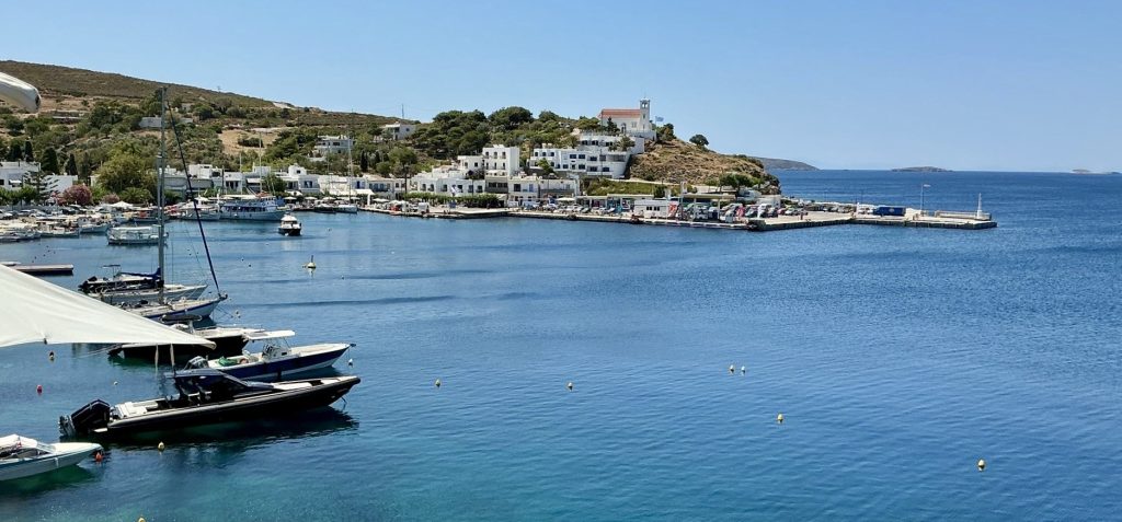 Beim Mopedverleih im Hafen mache ich mir für den nächsten Tag einen fahrbaren Untersatz klar. Georgios der Verleiher empfiehlt mir wortreich, mich vom teilweise militärisch gesperrten Süden der Insel fernzuhalten. Gut, denke ich mir, das wird der erste Ort wo ich hinfahren werde.