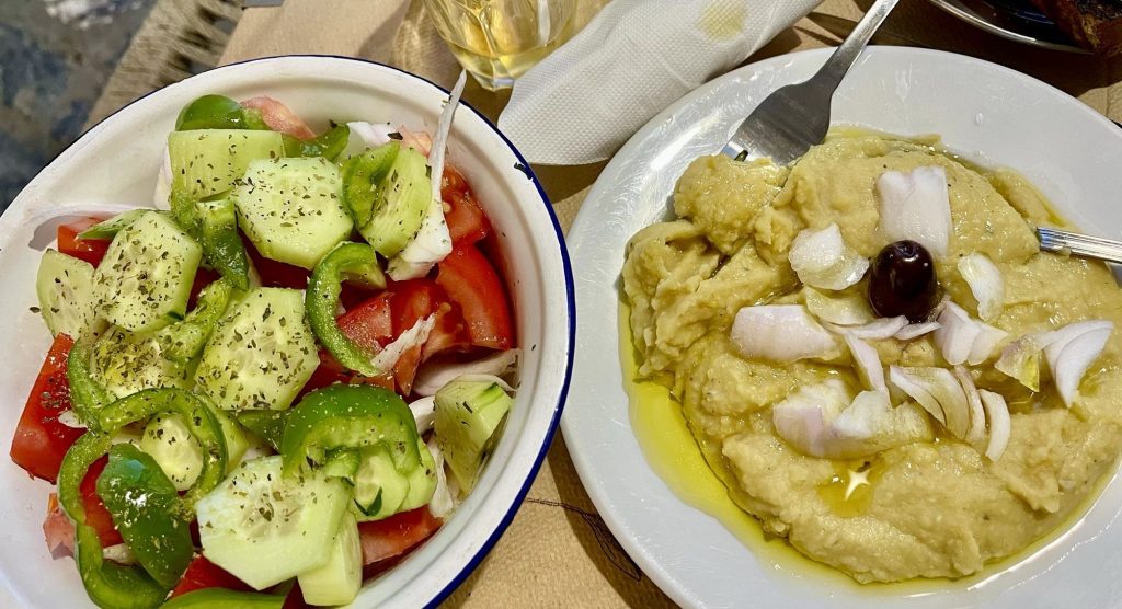 und auch ich sage nicht nein zur Fava, dem lauwarmen Erbspüree. Wie geht’s mir gut.