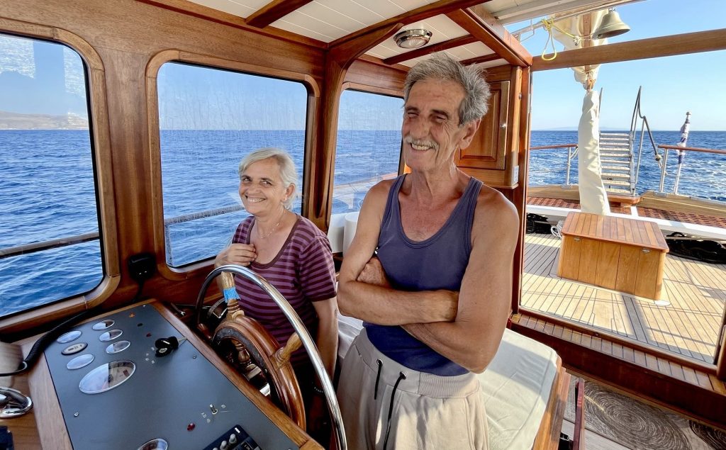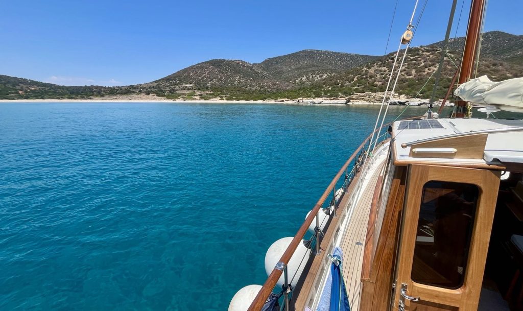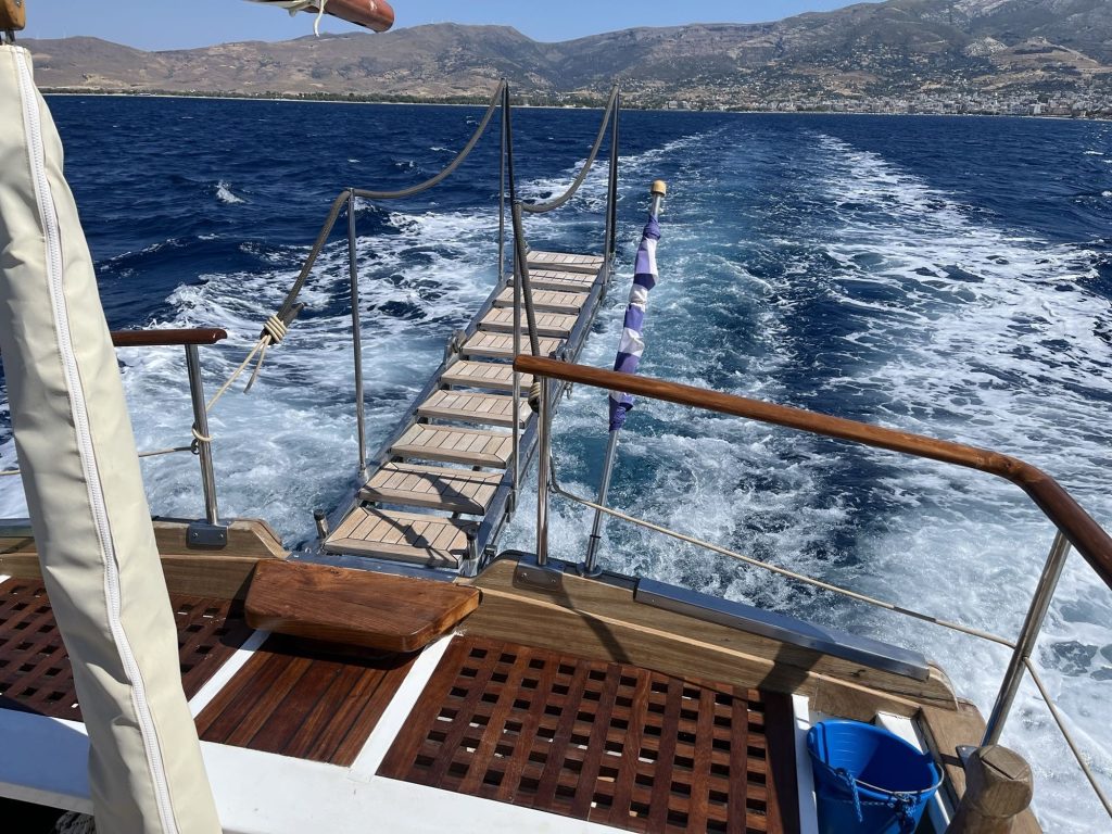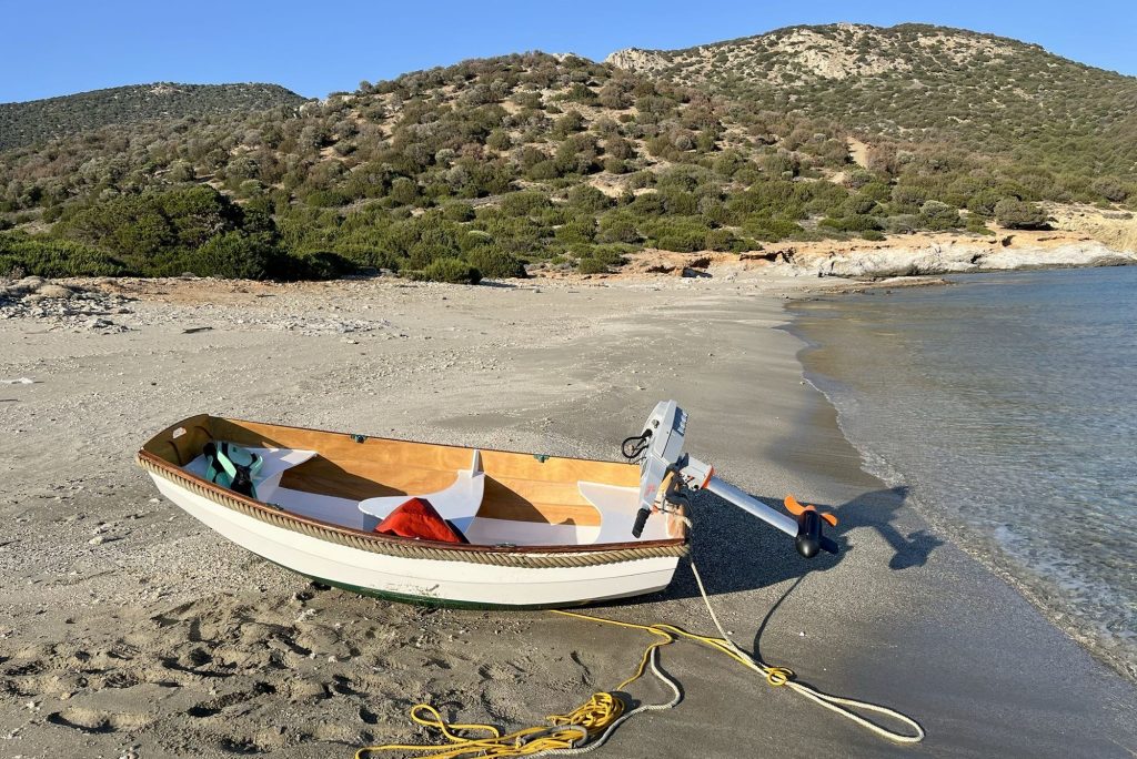 Am nächsten Tag soll ich die Freunde auf einen Ausflug zu einer nahegelegen Bucht begleiten, was ich gerne mache. Wir fahren gemeinsam mit ihrem Boot in die Bucht Vassiliko auf Megalonissos