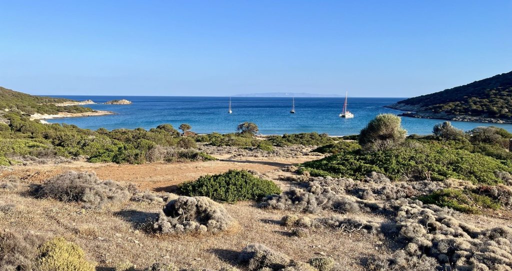 Der Wetterbericht hat für die nächsten Tage 30 Knoten angesagt. In der Bucht liege ich aber gut. Der Wind pfeift zwar vom Land her, aber es gibt keine Wellen und der Anker hat sich tief in den Sandboden eingegraben. Hier bleibe ich 2 Tage, am Samstag sehe ich dann weiter.