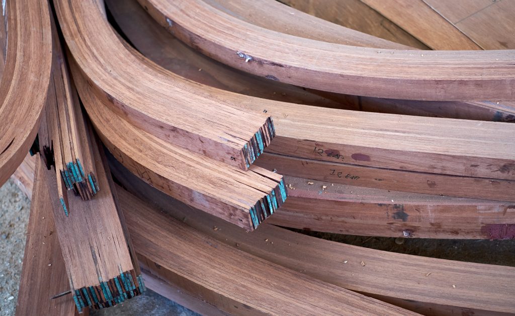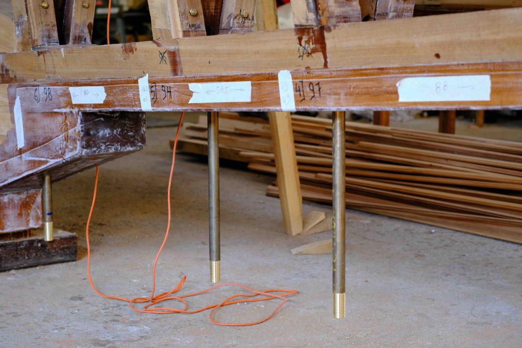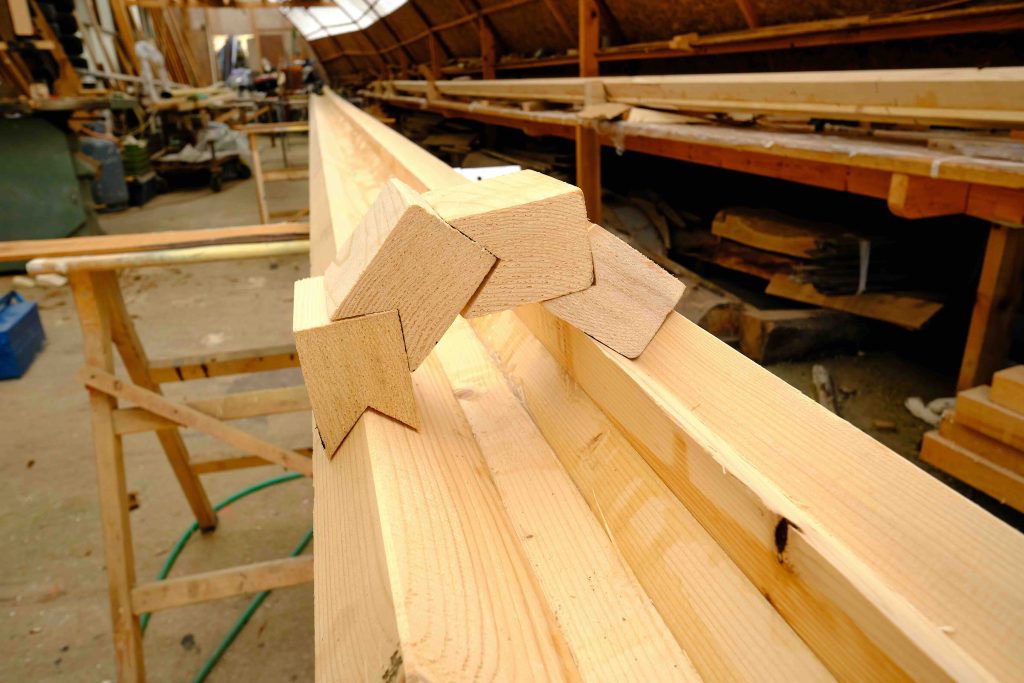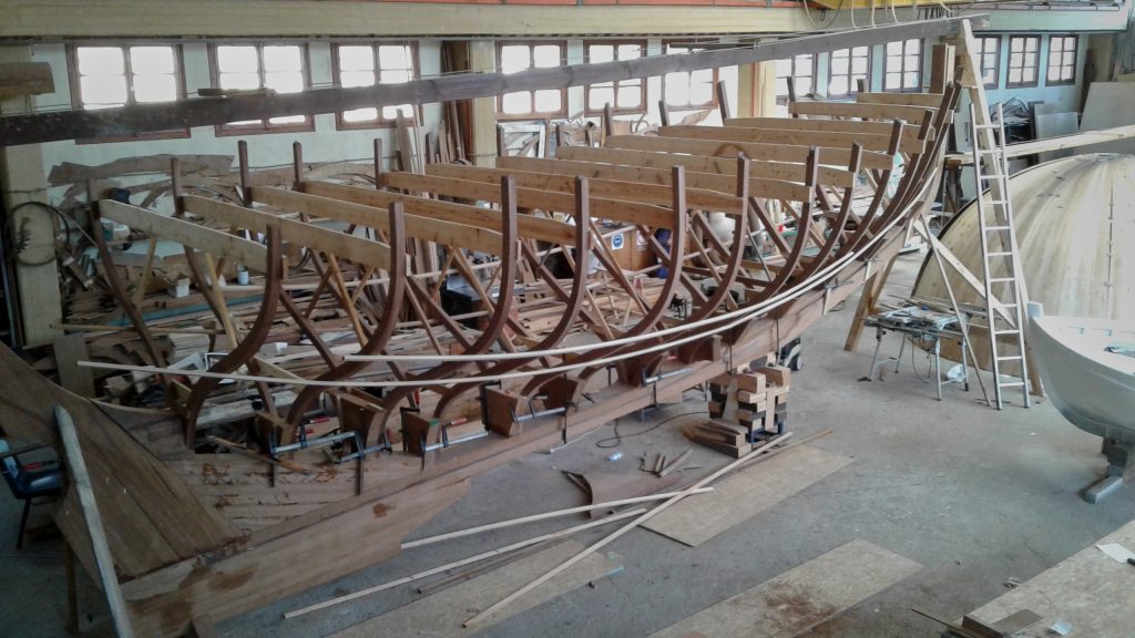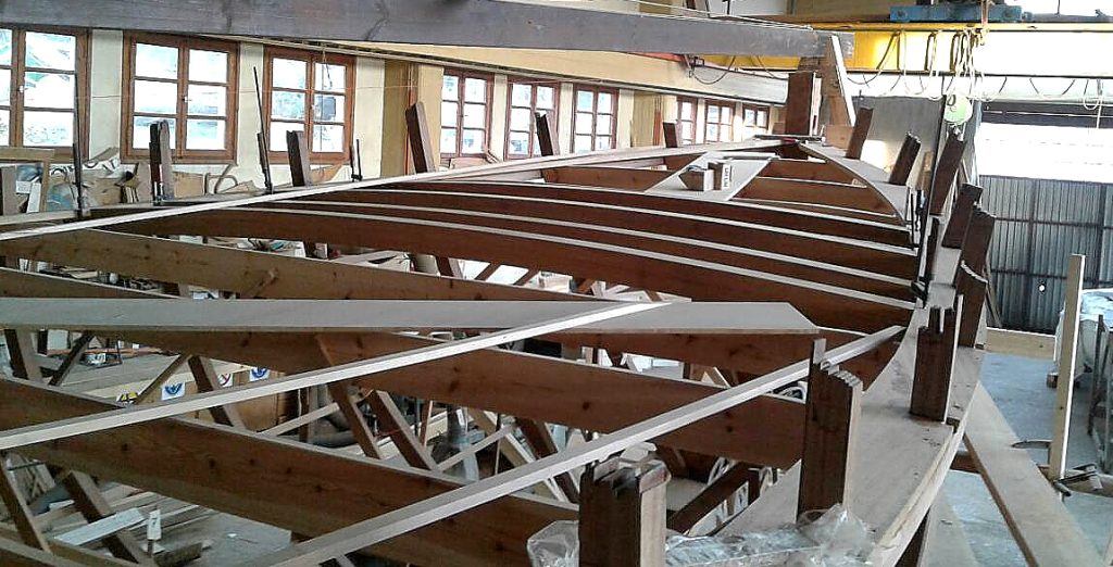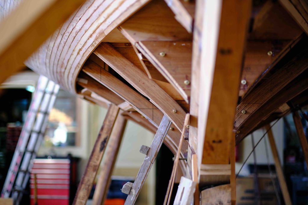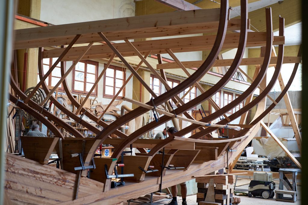 Und so entsteht das Bootsgerippe: Kiel und Spantem.
