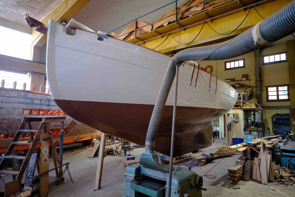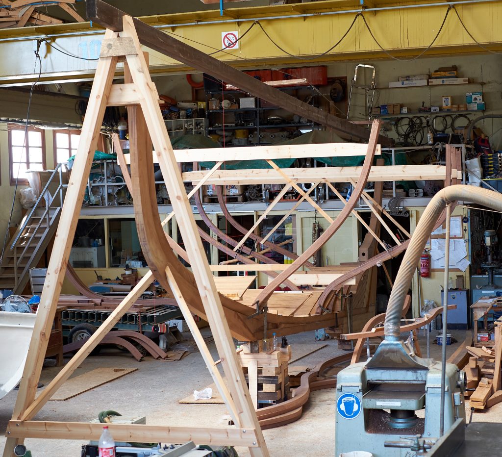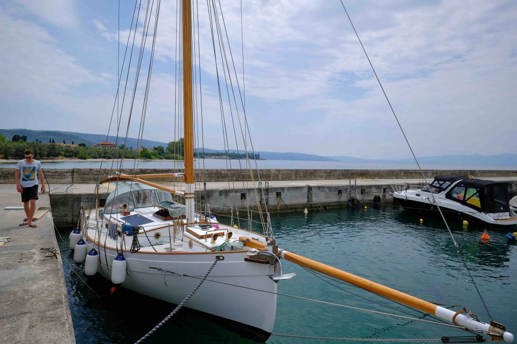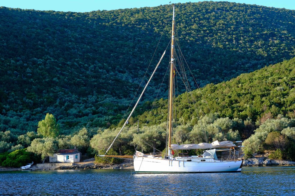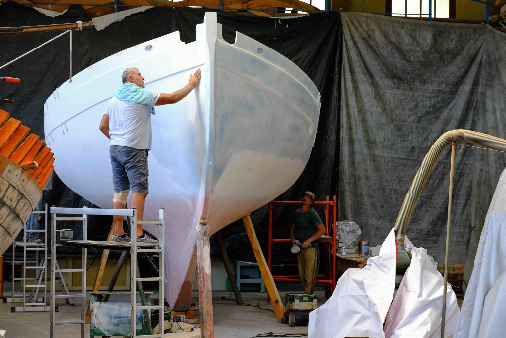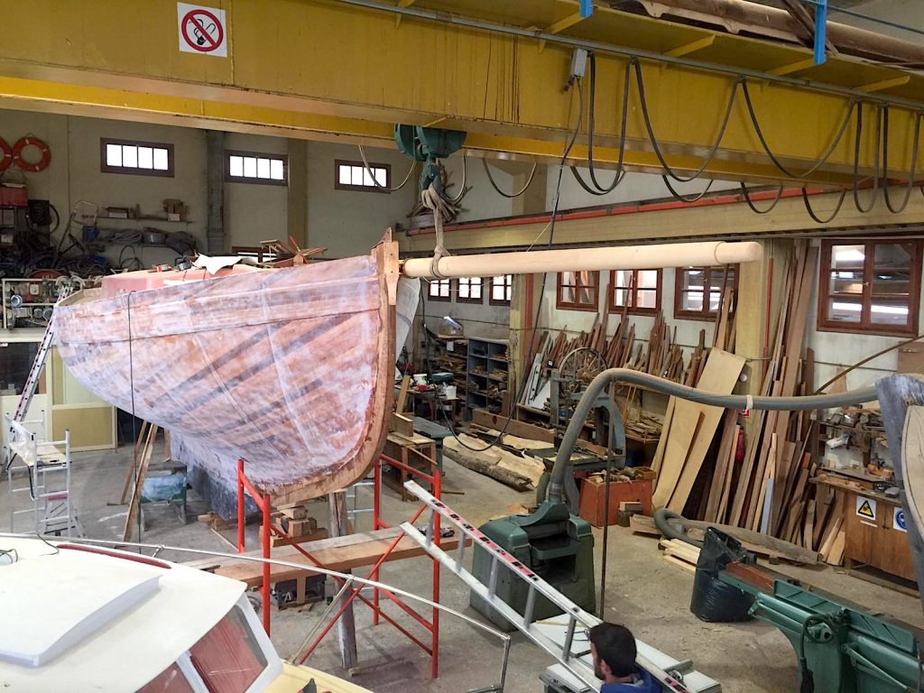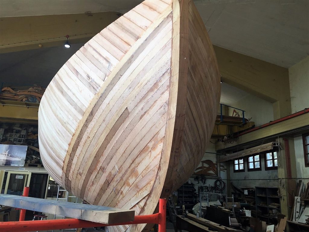 Gebaut worden ist das Boot dann in Griechenland in der Bootswerft Reppos in der Nähe von Volos – aus Iroko für Kiel, Spanten und Balken, und western red cedar für den Rumpf: