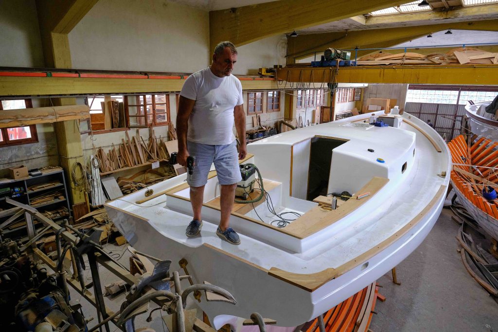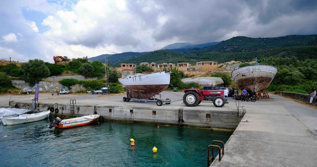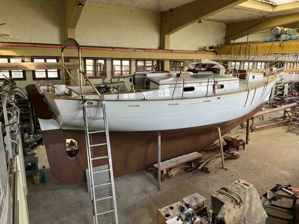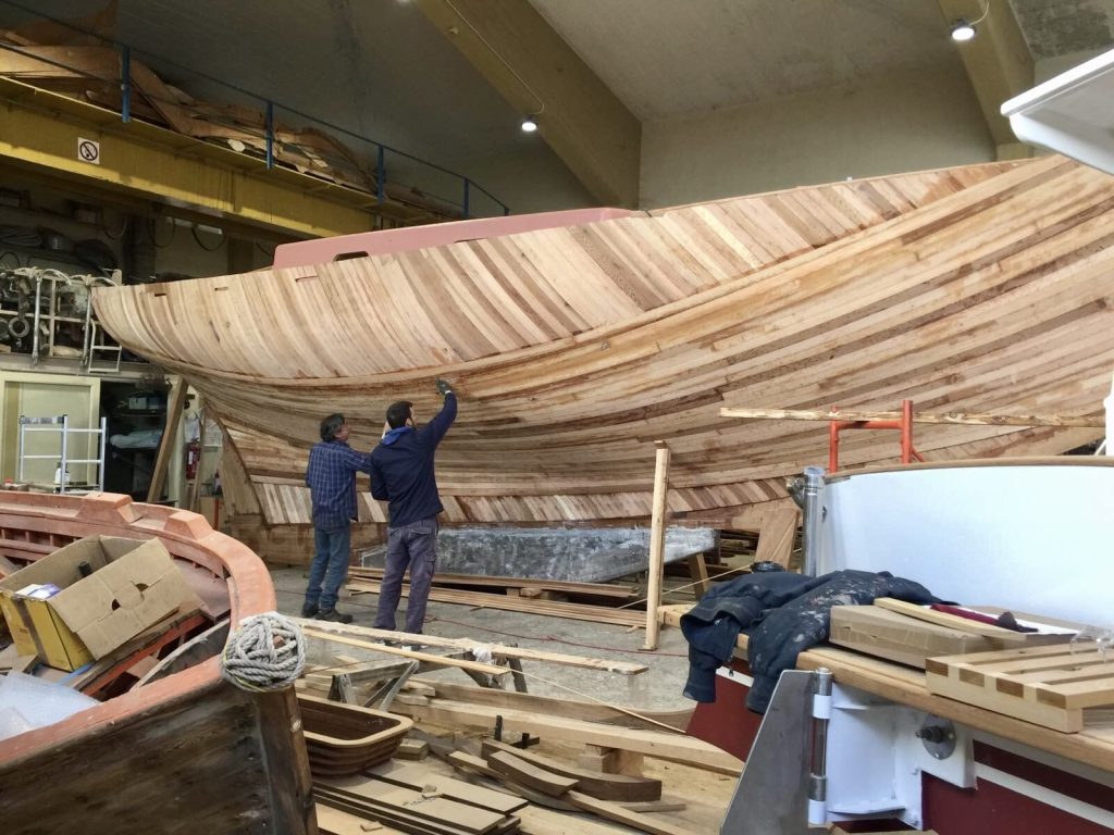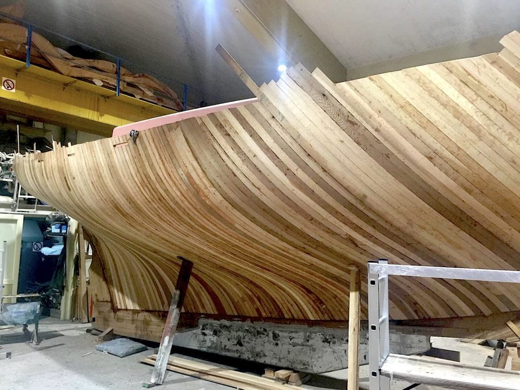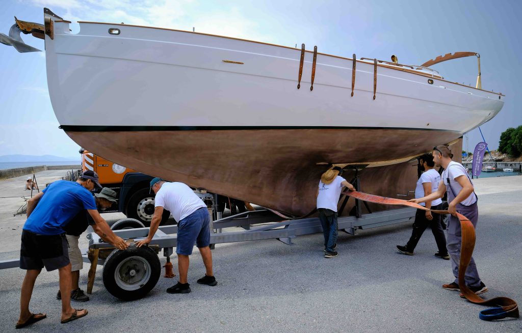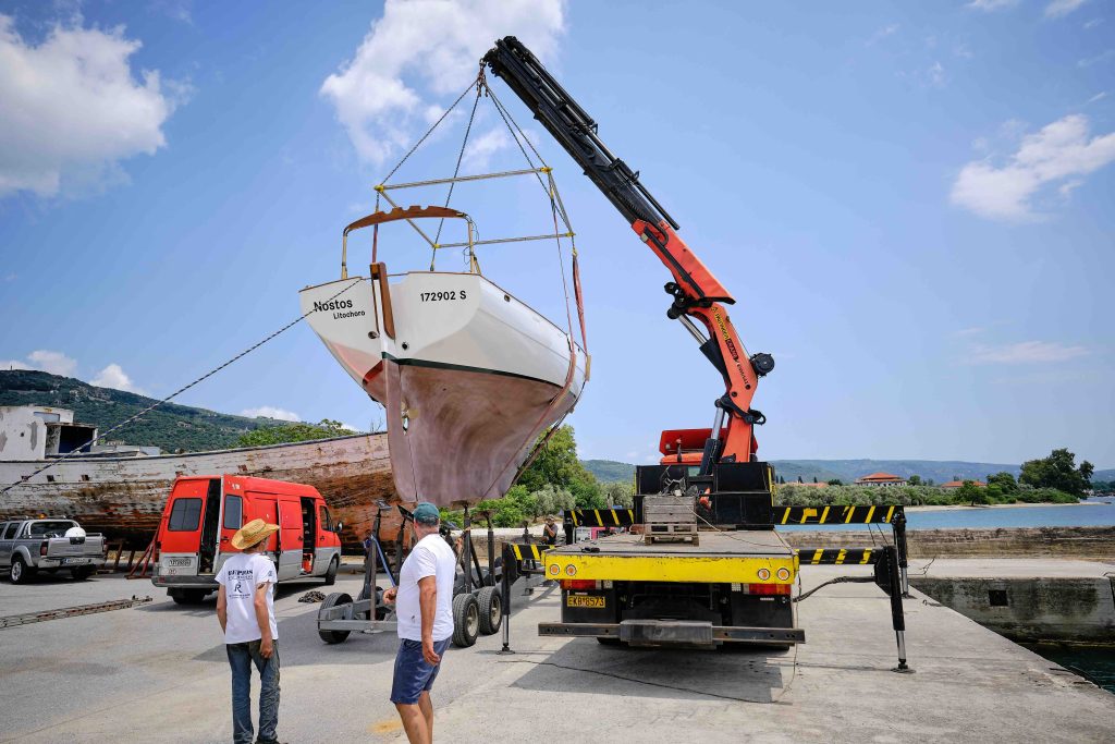 Gebaut worden ist das Boot dann in Griechenland in der Bootswerft Reppos in der Nähe von Volos – aus Iroko für Kiel, Spanten und Balken, und western red cedar für den Rumpf: